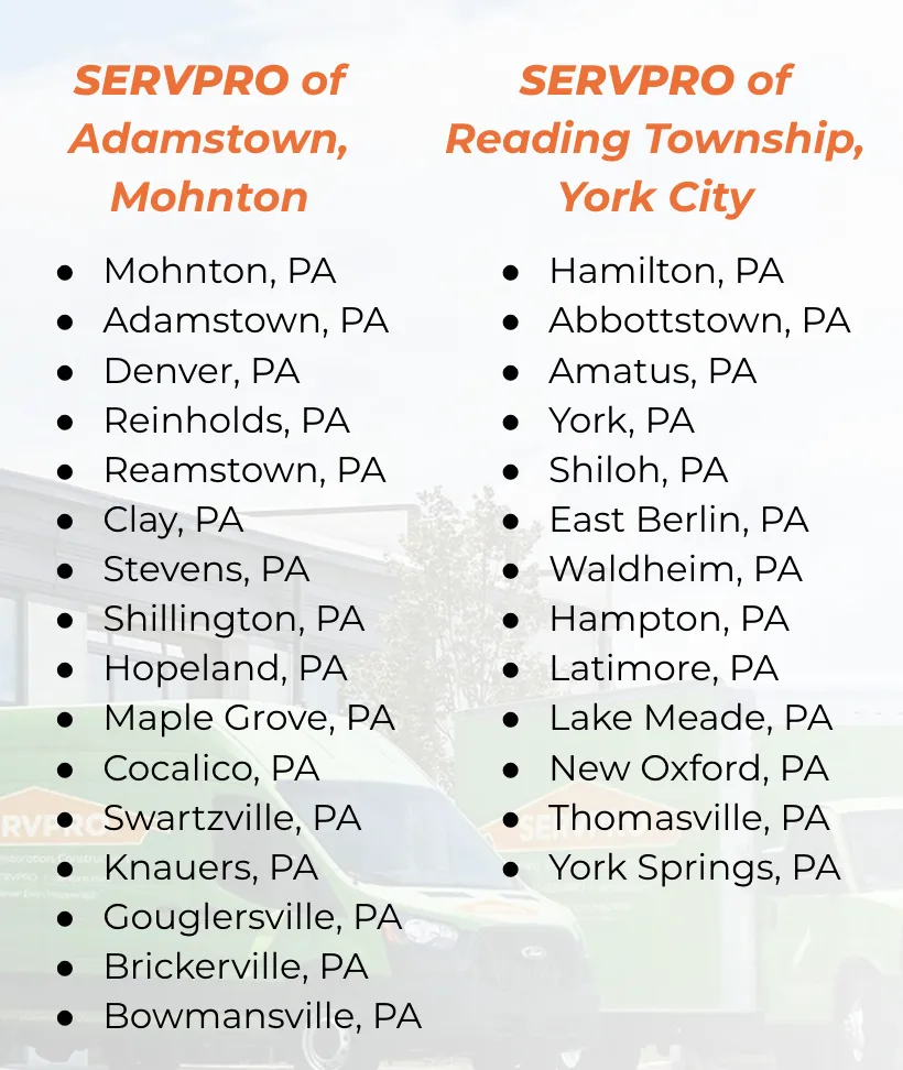 SERVPRO of Adamstown, Mohnton, Reading Townships, and York City are two Pennsylvania locations united in our mission to deliver top-class restorations.